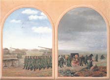 name: Jane 483200730 English dept. Junior Year. comment: Magritte, "The Applied Dialectic" This particular art seems to resemble a incident during a feirce war moment. The soldiers seems in a very deplorable state. Many are dead and many sruggling to survive. The clouds also looks very cold and dark, though the other side seems bright which might mean victory. name: English Department, junior, Angela, 483200352 comment: Magritte, "The Applied Dialectic" March 14th 畫面出現的是兩扇窗,似忽是位於同一面牆,但卻 是兩種完全不同的畫面.左邊表現的是平和的景象, 而右邊則是一片烏煙障氣,呈現出戰爭的暴戾,故這 幅圖片顯示作者對戰爭的批判. name: Jane 483200730 English dept. Junior Year. comment: Magritte, "The Applied Dialectic" This particular art seems to resemble a incident during a feirce war moment. The soldiers seems in a very deplorable state. Many are dead and many sruggling to survive. The clouds also looks very cold and dark, though the other side seems bright which might mean victory.