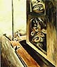 現實畫派的作品 亦時時以違逆 基本物理原則 之方式安排畫面物體, 例如堅硬的表殼 變成柔軟如 布面的質料, 而造成荒謬 或是 黑色幽默的效果, 令人看了 忍不住發笑, 卻又同時有一種 背脊骨涼颼颼 的感覺。